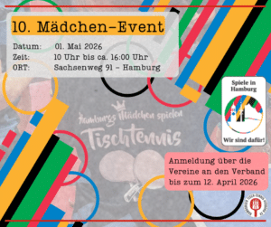 Unser 10-jähriges Jubiläum des Mädchen-Event steht ganz im Zeichen von Olympia. Der Hamburger Tisch-Tennis-Verband fördert den olympischen Gedanken und möchte dabei unterstützen, die Spiele nach…