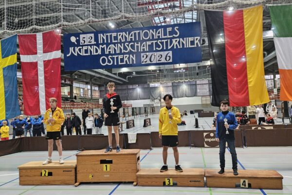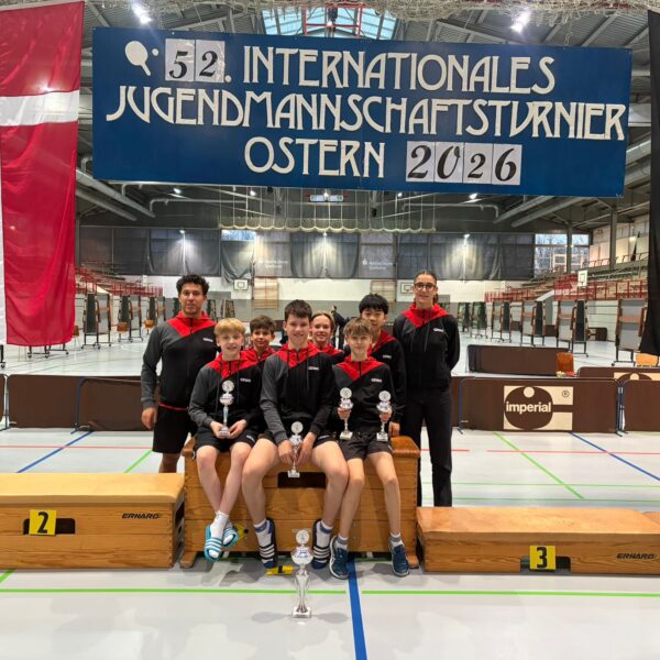Das erste Team hingegen setzte seinen Erfolgslauf fort. Mit einem Sieg in der Zwischenrunde sicherten sich Ole, Felix und Matteo den Einzug in die Finalgruppe (Plätze 1–3). Dort zeigten sie gegen starke internationale Konkurrenz, gegen TT24 Denmark und Lyckeby BTK, hochklassiges Tischtennis. Mit zwei weiteren Siegen krönten sie ihre Leistung und sicherten sich den Turniersieg in der Teamkonkurrenz Jugend 15.