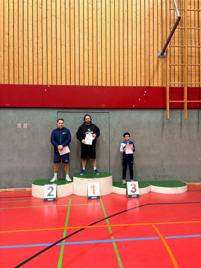 Bei den Herren sorgten insbesondere zwei Jugendliche vom TuS Germania Schnelsen für Furore. Der erst 13-jährige Jeffrey Wei brauchte zwar zunächst etwas Eingewöhnungszeit an das Spiel über vier Gewinnsätze, zeigte dann aber eindrucksvoll seine enorme Entwicklung der vergangenen Monate. Mit Siegen über David Schulz, Harun Bozanoglu und Pascal Köhler zog er überraschend ins Halbfinale ein, wo er sich in einem hochklassigen Match Patrick Khazaeli mit 2:4 geschlagen geben musste.