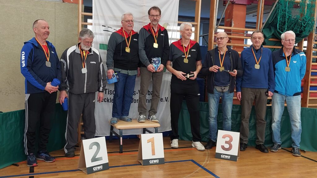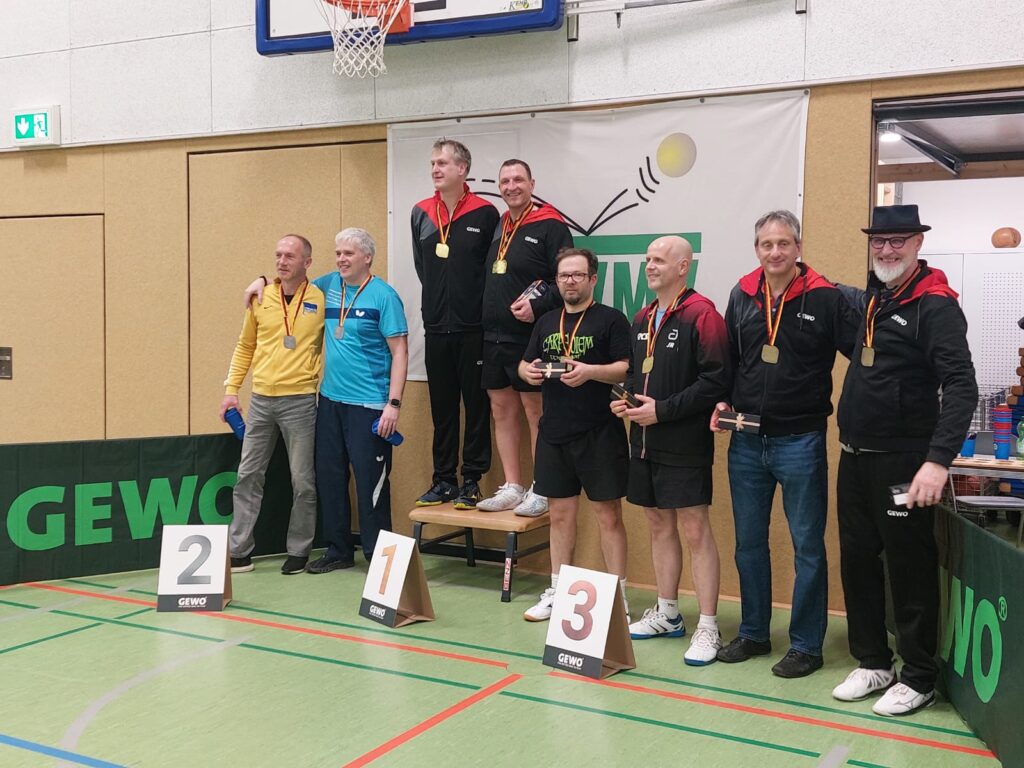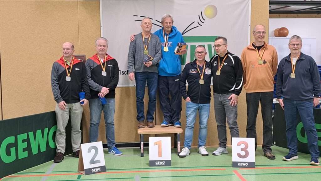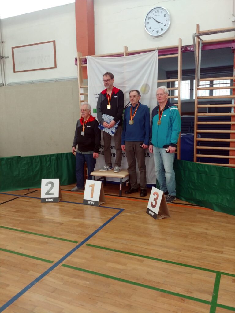 Bei den Herren 70 starteten die Hamburger Spieler zunächst sehr erfolgreich in das Turnier: Bernd Bültemeier (Oberalster VfW), Wolfgang Fründt (SG TTC GWR/TuS Osdorf) und Michi Pagel (Oberalster VfW) gewannen jeweils ihre Vorrundengruppen ohne Niederlage.
