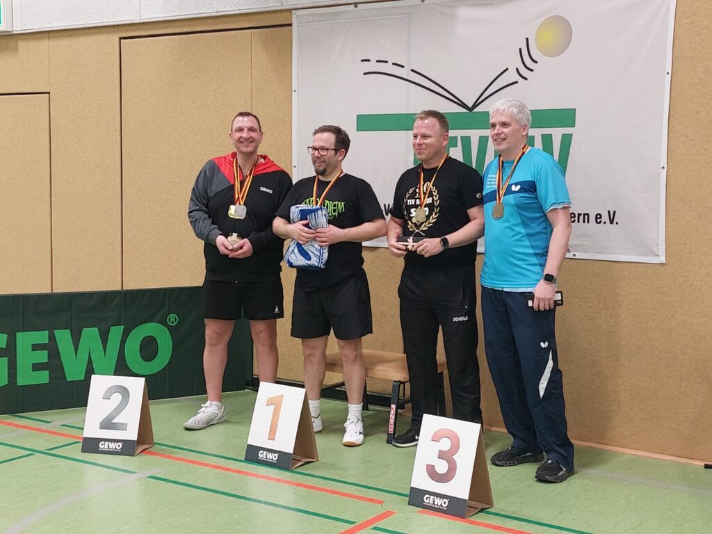 Bernd Schiller (TTSG Urania Bramfeld) blieb ebenfalls in der Gruppenphase ungeschlagen. In der K.-o.-Runde bewies er anschließend Nervenstärke und setzte sich zweimal in engen Fünfsatzspielen durch, wodurch er bis ins Halbfinale vorstieß. Dort gab er alles, musste aber nach hart umkämpften vier Sätzen in der Verlängerung nachgeben. Damit sicherte er sich einen hervorragenden dritten Platz.