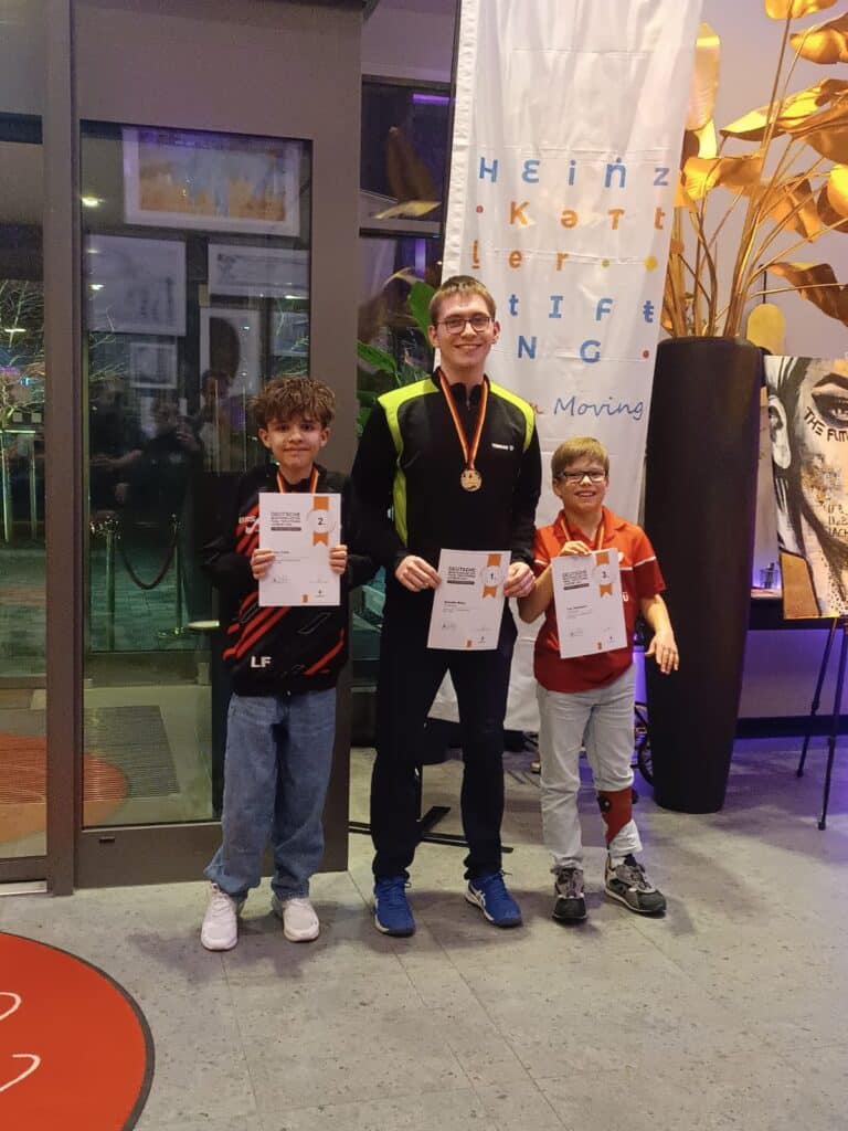 Im anschließenden Einzelwettbewerb wurde zunächst in Gruppen gespielt. Während Philip, Shawn und Nasrullah wertvolle Erfahrungen auf nationaler Ebene sammeln konnten, zeigte Linus Franz in der erstmals eigenständig ausgetragenen Wettkampfklasse 6 ein starkes Turnier. Mit konzentrierten und mutigen Auftritten sicherte er sich souverän den Gruppensieg. Nach einem überzeugenden Halbfinalerfolg gegen Finn Nocke (Rheinland-Pfalz) zog er ins Finale ein, in dem er Top-Favorit Benedikt Müller (Hessen) erwartungsgemäß unterlegen war.